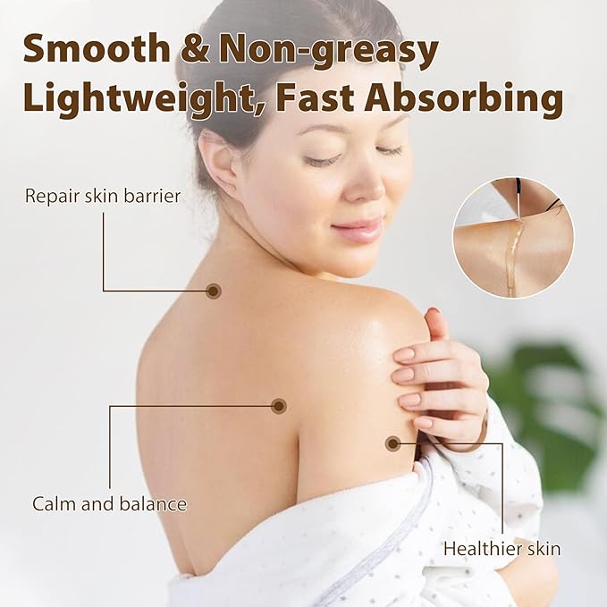 - Special Formula: Free of mineral oil, pigments, lightweight in texture and gentle touch, our body oil after shower with sweet almond oil and sunflower seed oil base can be quickly absorbed to soothe and soften the skin while adding a healthy shine