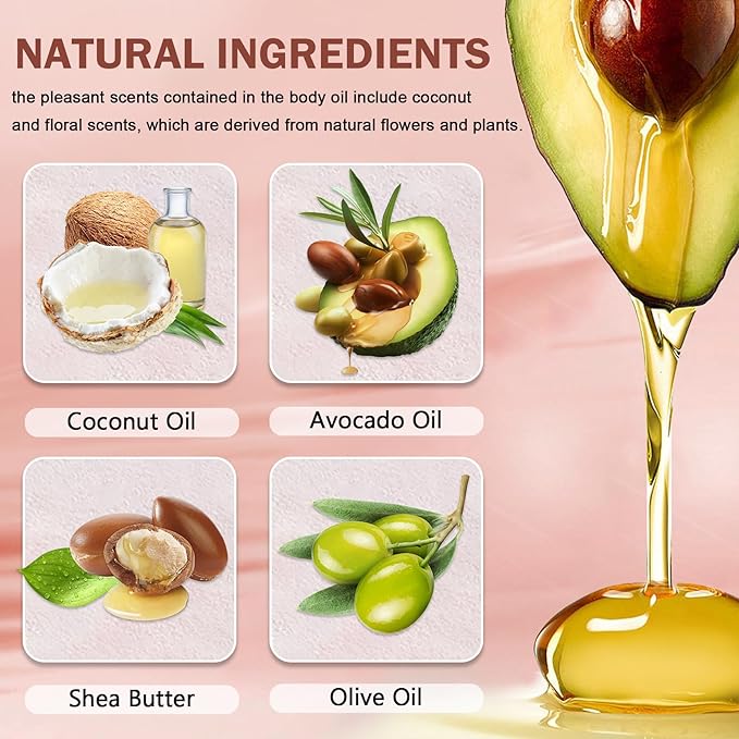 - 【Shimmer Body Oil】Shimmer gold mica is added to the body oil to protect the skin from UV damage,while presenting a radiant luster on the skin,becoming the focus of everyone's attention