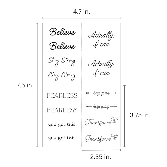 - ✨ Quick and Easy Application - Apply tattoos in 30 seconds. Easily remove tattoos with baby oil. Have the flexibility to change your affirmations whenever you choose.