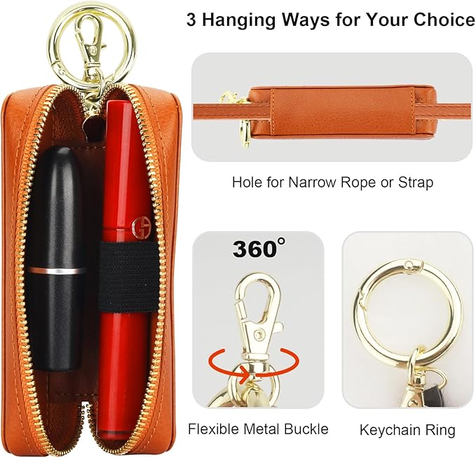 - 【Smooth Leather】After comparison on quality, character, grain, and texture, we chose this leather which is smooth in texture while comfortable in grip to produce this lip gloss storage bag. Besides, this lipstick pouch is designed with a leather hole on the side which is convenient to put on the bag through the strap.