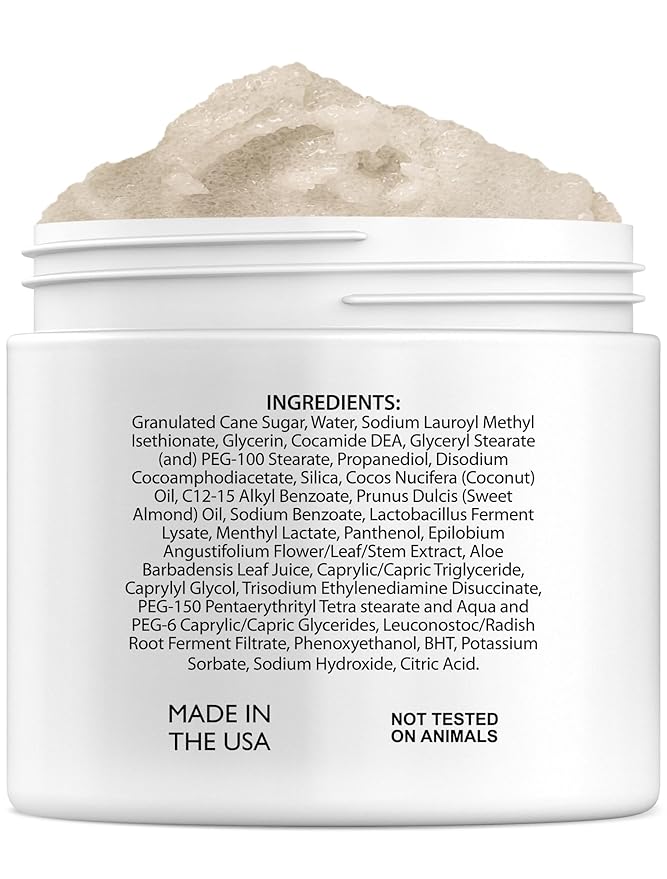 - MADE IN THE USA – Due to the natural ingredients in our coconut body scrub variations in color and settling may occur. Give it a quick mix and enjoy! Cruelty free, Paraben free and SLS free.