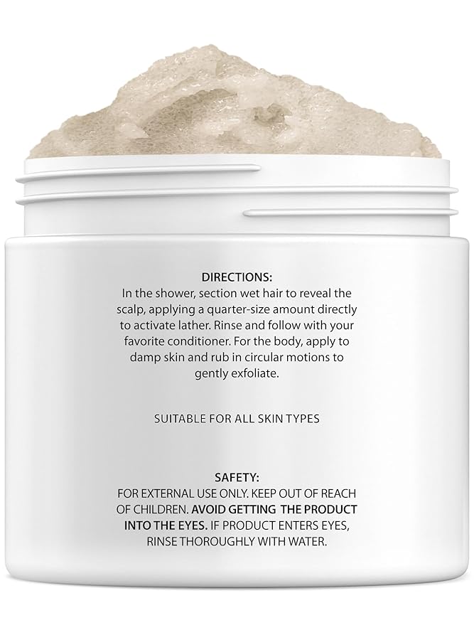 - SCALP EXFOLIATOR – Our scalp scrub exfoliator can gently exfoliate a dry, flaky scalp and help cleanse the scalp from product buildup, dirt, and flakes. It is soothing, clarifying and refreshing for the scalp.