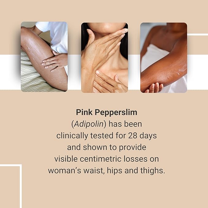 - Special Feature : Formulated with Pink PepperSlim (Schinus Terebinthifolius Seed Extract) - helps Increase microcirculation, block fat storage in pre-adipocytes and provide visible slimming effect is 28 days, Daily use helps to firm and tighten legs, bum, tummy and other areas on the body, Luxurious Vanilla Absolute Scent, Inner cover with spatula - convenient twist off lid, Fast absorbing and luxurious creamy texture - does not leave a greasy residue on the skin Formulated with Pink PepperSlim (Schinus Terebinthifolius Seed Extract) - helps Increase microcirculation, block fat storage in pre-adipocytes and provide visible slimming effect is 28 days, Daily use helps to firm and tight… See more