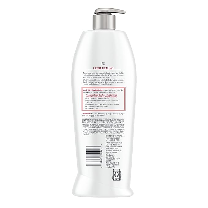 Curel Ultra Healing Lotion, Hand and Body Moisturizer for Extra Dry Skin, with Advanced Ceramide Complex and Hydrating Agents, for Tight Skin, 20 Ounces
