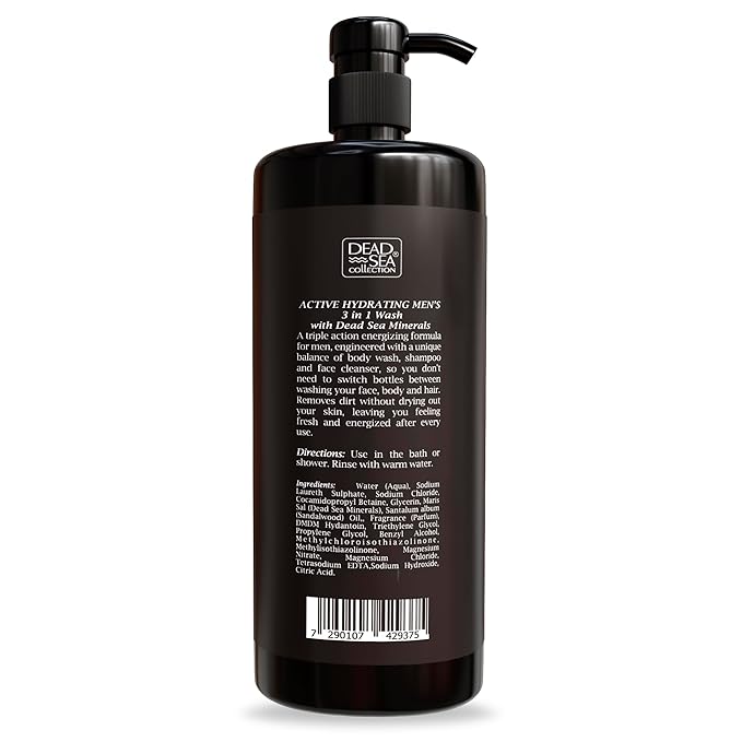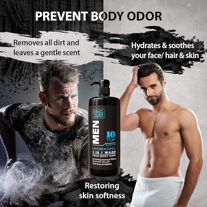 - Pure Dead Sea minerals - as a men's s face and body wash, it gently cleanses without drying the skin, providing essential nutrition. When used as a shampoo for men, it keeps hair moisturized and manageable, making it the perfect choice for the best mens body wash!