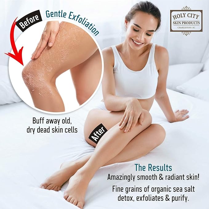 - NOURISH AND REVITALIZE YOUR SKIN - Utilizing hydrating oils and nutrient-rich dead sea salts, the Hand and Body Salt Scrub by Holy City Skin Products revitalizes your skin for a softer, youthful appearance. Gently cleansing away dead skin cells and stimulating increased circulation to carry away toxins, the Hand and Body Salt Scrub effectively clears the skin of unsightly blemishes.