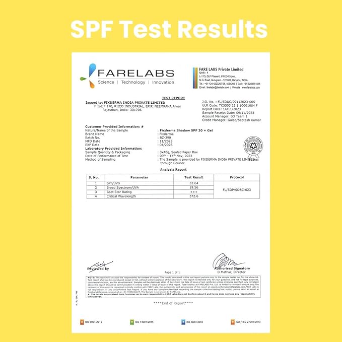 Fixderma Shadow SPF 30+ Gel, Dermatologist tested Offers SPF 30 +, Broad Spectrum UVA and UVB Protection, Water resistant sunscreen, Non-greasy sunscreen, Offers PA++ Protection, SPF 30 Gel- 2.6Oz
