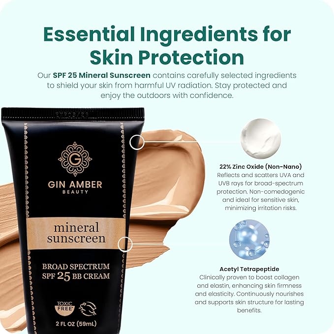 - All-in-one Tinted Sunscreen: Get the best of both worlds with our Toxic Free Mineral Tinted SPF 25 that provides natural broad-spectrum protection against harmful UVA and UVB rays while also acting as a primer and moisturizer that naturally blends to match all skin tones.