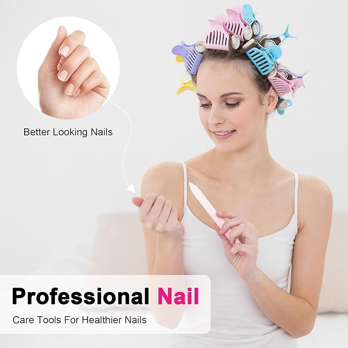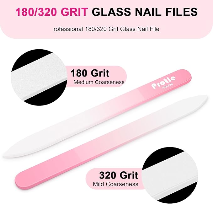 - 180/320 Dual-grit Glass Nail File:customized for natural nails.The 180-grit side efficiently smooths broken or chipped nails, while the 320-grit side perfects their shape. The pointed tip effectively removes dirt and debris. This innovative file promotes healthy nail growth, keeping your nails long, beautiful, and strong!