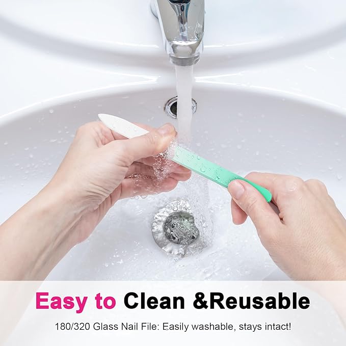 - Easy to Clean: The glass nail file's easy-to-clean feature allows for direct washing with water, ensuring it remains like new after repeated uses,unlike wooden or metal files that can corrode or rust.
