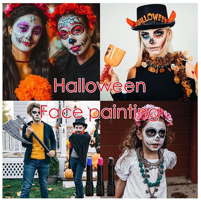 - 💄【Long-lasting and Waterproof Formula】: Our paint stick is formulated to stay put throughout the day, ensuring your costume makeup remains flawless and intact. Fast drying formula prevents smudging and ensures long-lasting wear. Waterproof and perfect for various occasions including baseball, football, clown makeup, costumes, special effects, starfire, and cosplay