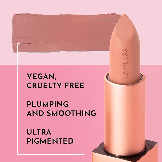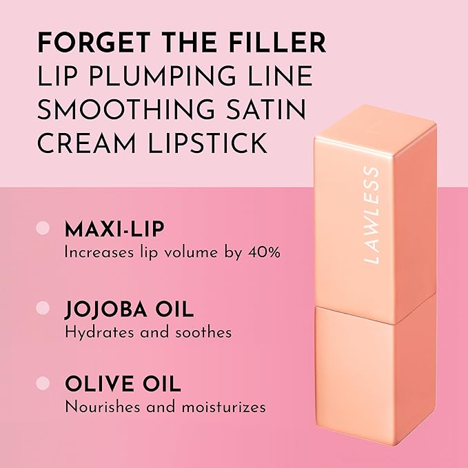 LAWLESS Forget the Filler Lip-Plumping Line-Smoothing Satin Cream Lipstick - Fawn - Natural Ingredients Smooth and Hydrate Lips for a Plumper, Fuller Look - 3.7g