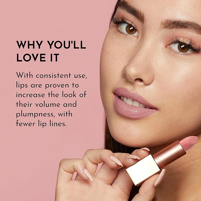 - Why You'll Love It: Indulge in the comfort and hydration provided by our lipstick, fortified with nourishing Jojoba, Castor Seed, and Olive Oils. With consistent use, lips have been shown to increase the look of their volume and plumpness, while minimizing the appearance of lip lines for a youthful pout.
