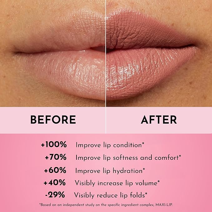 - Active Ingredients: Our lipstick features MAXI-LIP, a natural peptide complex that stimulates collagen synthesis via Hyaluronic Acid. This innovative technology deeply moisturizes the lips, making them firmer and more defined. Jojoba Oil hydrates and nurtures dry, chapped lips, while Olive Oil helps nourish and moisturize for a luscious pout.