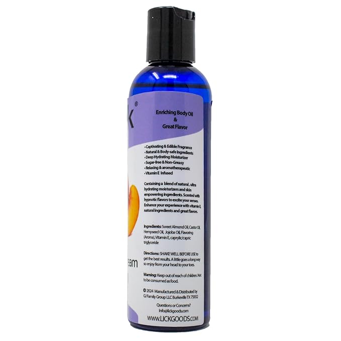 - Peaches and Cream Scented Body Oil: Our body oil scented with the lush aroma of peaches and cream is a treat for your senses. Enjoy the natural and gentle scent as it envelopes your skin, creating a soothing aromatherapy experience.