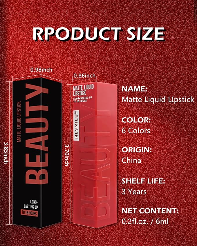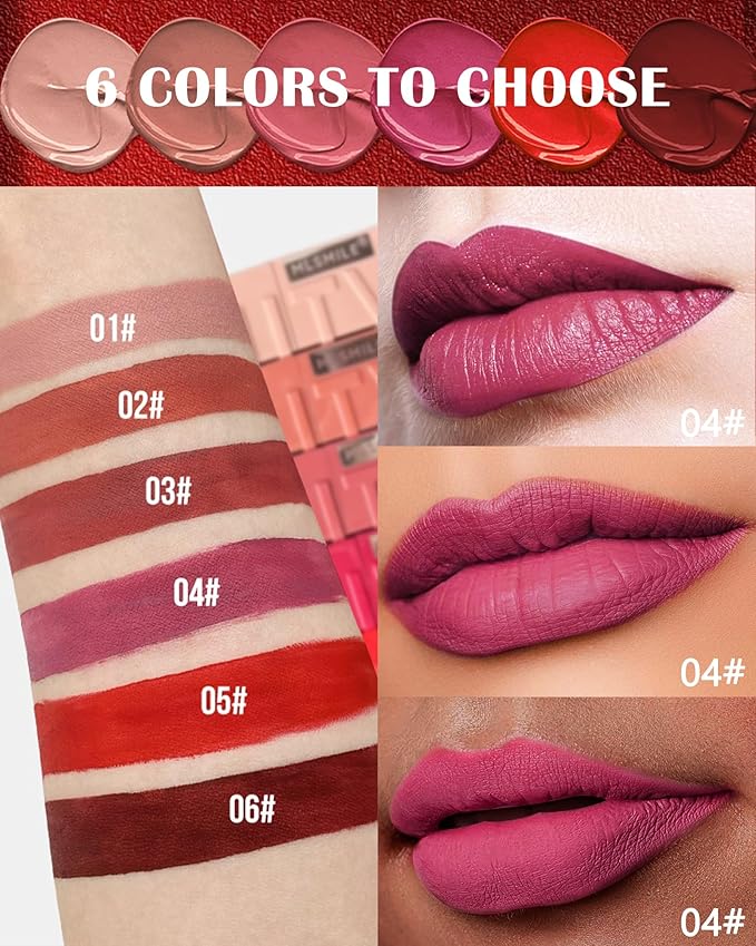 - VELVET MATTE LIQUID LIPSTICK - The long wear highly-pigmented liquid matte lipsticks deliver smudge-proof waterproof, featuring our color lock formula. Soft velvet texture glides on effortlessly and covers evenly, and dries down to a luxurious and matte finish that defies smudging and transfer, which up to 16 hours wear. Available in six daily pop-colors to meet your daily use needs and create a perfect lip look.