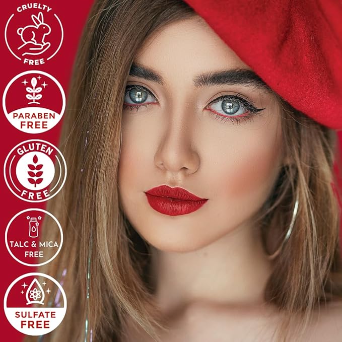 - Paraben, Mica, Talc, and Gluten-Free: Embrace worry-free beauty with a our matte liquid lipstick that's paraben-free, mica-free, talc-free, and gluten-free, catering to your health-conscious choices. Designed and formulated in the USA, and manufactured in a GMP-certified facility, our cosmetics are safe to use on all skin types
