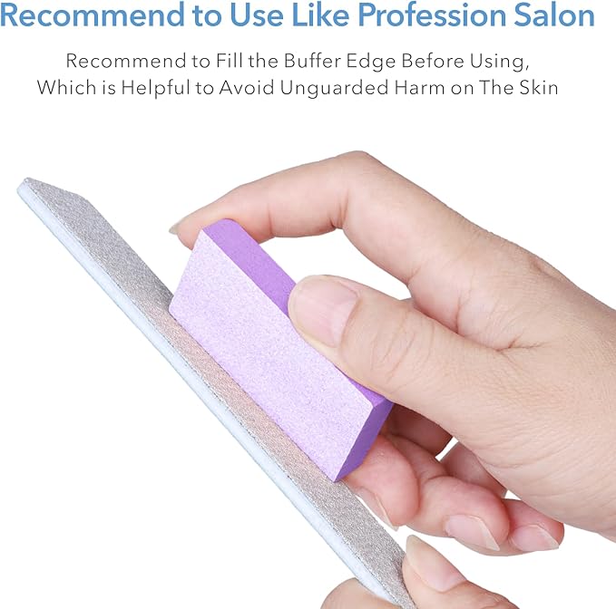 - PROFESSIONAL FUNCTION: Work great to get the ridge off the nail surface, so the nail polish, gel polish can go on smoothly. Work great to refine the nail shape, make sure that no rough edges left over aftet filing the nail. Work great to buff the arcylic nail, dipping powder nail, helps to remove the ugly file marks and scratches from surface for better top coat effect. Good tool to remove glue residue
