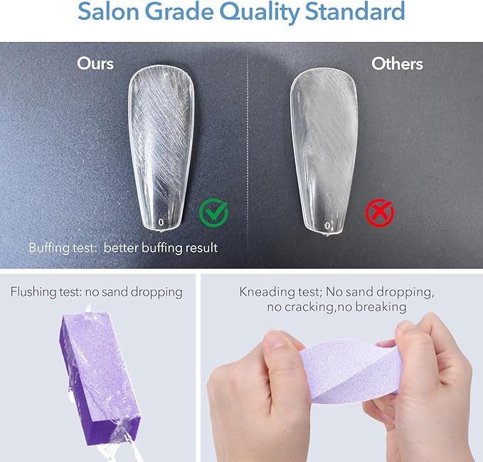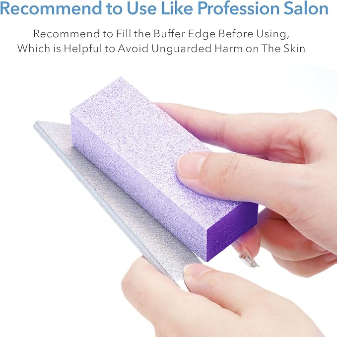 - SALON GRADE QUALITY STANDARD: Made of high-elastic sponge, which is bendable, soft and light weight. Also, this high density sponge material make the buffer block runs smoothly for a perfect nail treatment without causing any chip or crack. Coated with top grade white corundum sand on the surface, to provide smooth, efficient buffing effect. Enhanced coating offered more durable quality. Coated adhesive glue for sanding surface, which makes the sand stick strongly and not easy to drop off