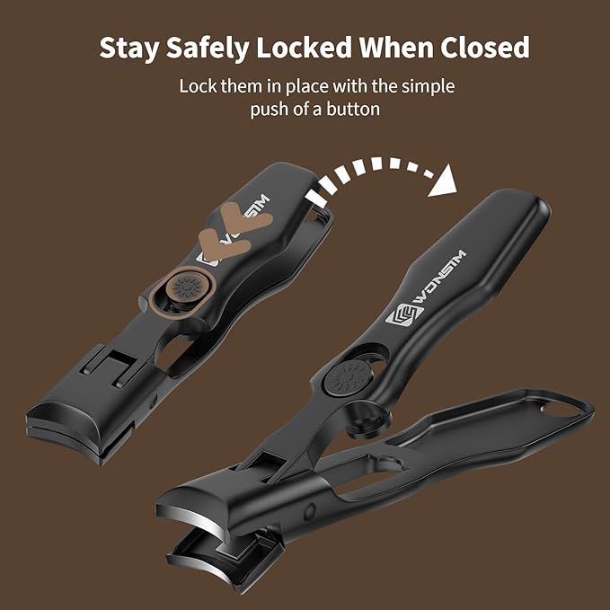 - Anti-Splash and Safety Lock Design: The upgraded fingernail clipper features a built-in catcher to prevent nail scraps from splashing, keeping your space clean. With a wide jaw opening and sharp blades, our finger nail clippers adult include a safety lock for secure storage and come with a portable case for easy carrying.
