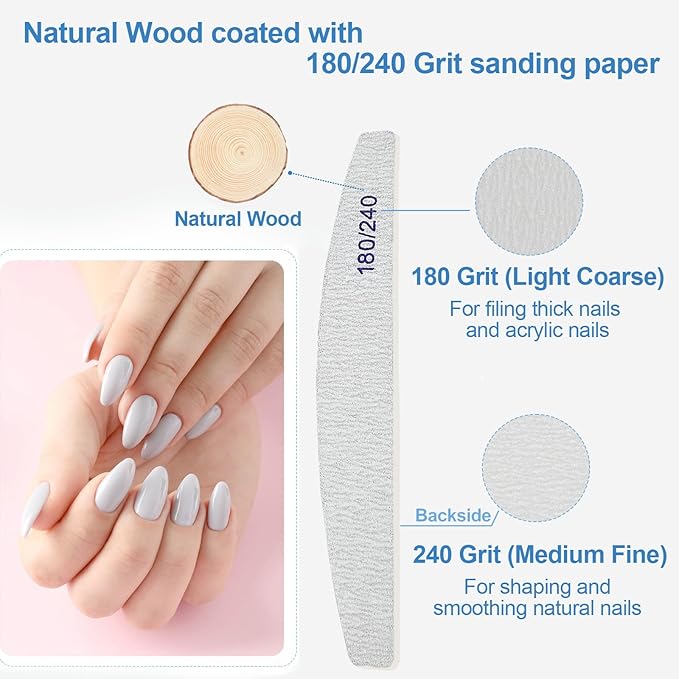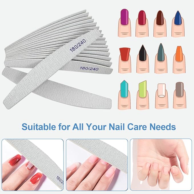 - Double Sided 180/240 Grit: so you can choose based on your preference, where the coarse 180 grit is used to file down the uneven surface of the nail, and the fine 240 grit side used to polish the grease on the nail surface, making it easy to buff and smooth out the rough edges of your nail, ideal for both professionals and at-home users, providing a salon-quality nail buffing experience in the comfort of your own home;