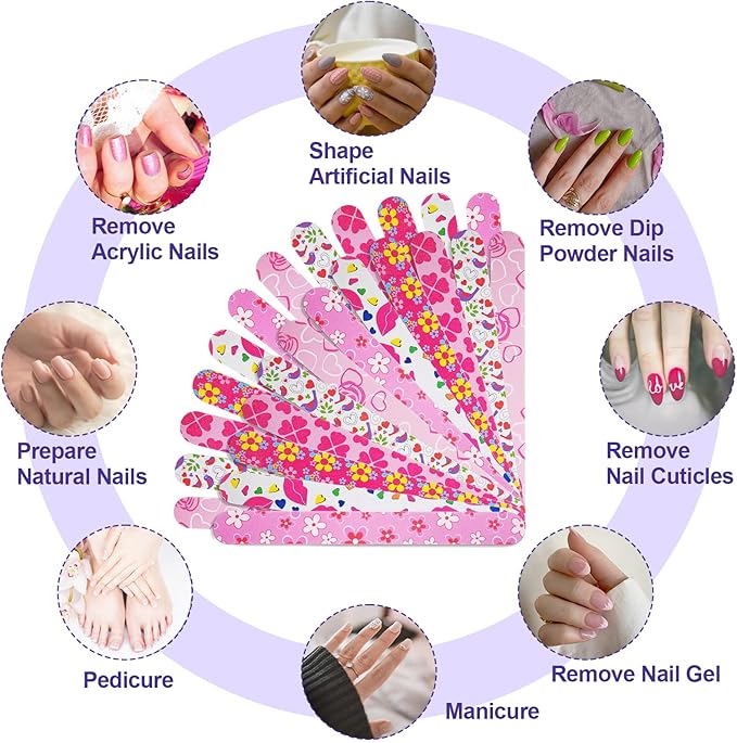 - Flowery and Cute Emory Boards Design: Our colorful nail file measuring at 7.1 inches long is designed with a rounded top and dual sides, ensuring a comfortable nail grooming experience with its sturdy and long-lasting build. With 6 cheerful color options, these files are sure to lift your spirits. Whether you're pursuing DIY nail art at home or seeking professional salon-quality results, these files offer outstanding value.
