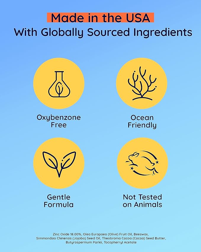 - Our kids sunscreen stick is packed with a potent 18% Zinc Oxide to offer a broad spectrum of protection from UVA and UVB rays; The mineral-based defense will shield skin from sunburn while preserving much-needed hydration