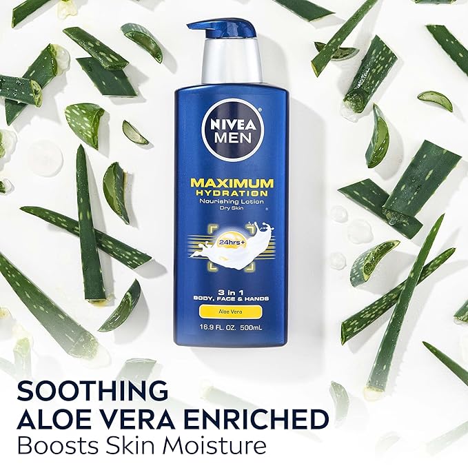 - 24+ Hour Moisture: NIVEA MEN Maximum Hydration 3 in 1 Nourishing Lotion intensively moisturizes skin for 24+ hours