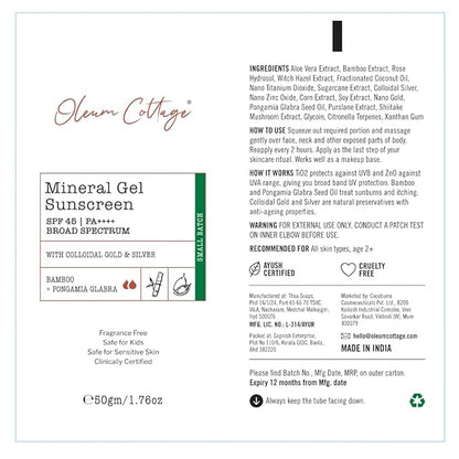 Oleum Cottage, Mineral Gel Sunscreen|SPF