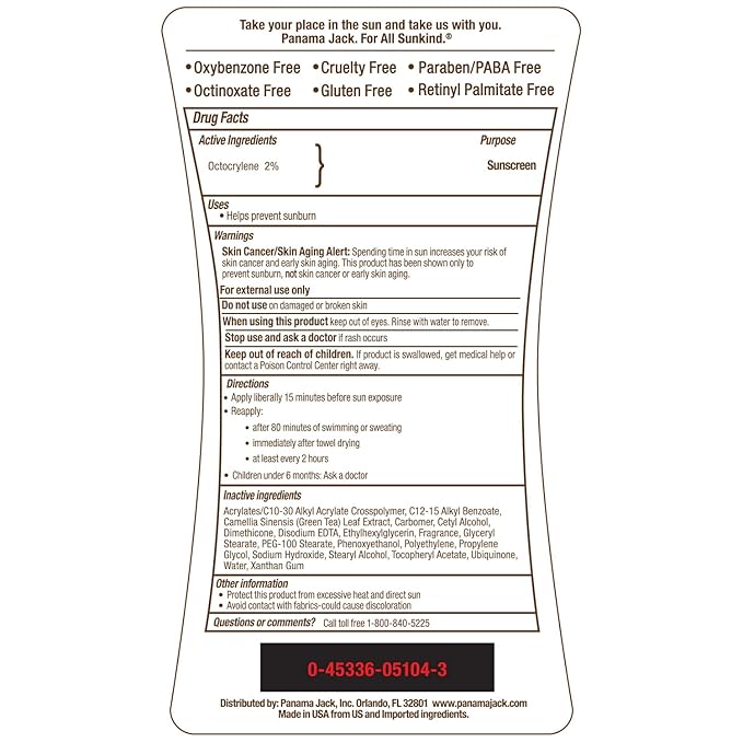 - CONTAINS MINIMAL SUNSCREEN: With SPF 4 (Sun Protection Factor), this Panama Jack water resistant (80 minutes) sunscreen lotion is best for use by skin types that rarely or never burn