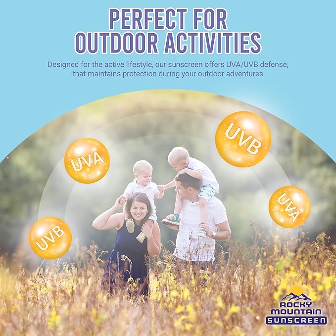 - SUN PROTECTION FOR ALL AGES : Rocky Mountain Sunscreen brings you a sunblock that's approved for use by both adults and children aged 6 months and older. With our reliable formula, you can confidently enjoy the sun while minimizing the risk of developing skin cancer, premature skin aging, and painful sunburns. Our sunblock is specially designed to provide effective protection when used as directed, ensuring you and your family stay shielded from harmful UVA and UVB rays.
