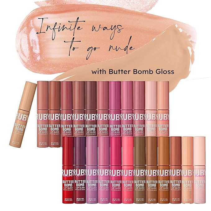 Ruby Kisses Lip Gloss Butter Bomb Gloss Non-Sticky Lip Gloss Vitamin E Natural Nude Lip Makeup - 7.8mL (0.26 US fl.oz) (White Lie)