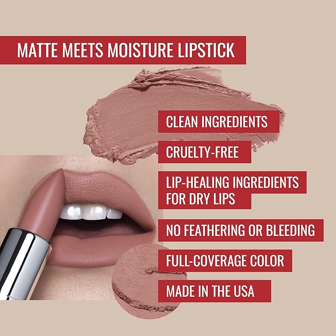 - NOSTALGIC BEAUTY IN A MODERN FORMULA: Avoid the dry feeling that usually comes with matte lip options and use this moisturizing lipstick formula to give your look the right finish. Get buildable full coverage that stays without any feathering or bleeding.