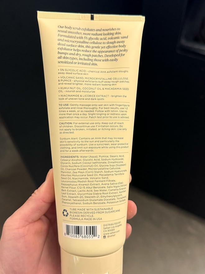 - GOOD FOR SKIN. GOOD FOR THE WORLD: Our KP Body Smoother Glycolic Scrub uses a Earth-friendly Bioresin derived from sugar cane to help keep our planet happy! All Saltair products are Cruelty Free, Vegan, Paraben Free and Gluten Free. We are a brand built on care, and like our motto says, we truly believe every body is welcome here. (edited)