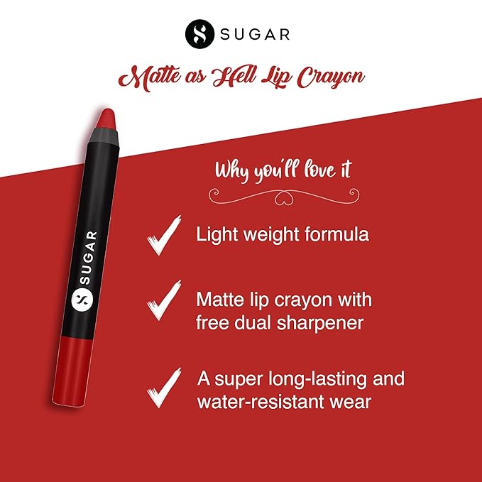 - ➤LONG-LASTING LIPSTICK: SUGAR Matte as Hell Crayon Lipsticks for Women. Unleash vibrant and enduring beauty with our matte lip crayon for women, ensuring up to 12 hours of flawless wear.