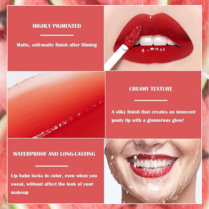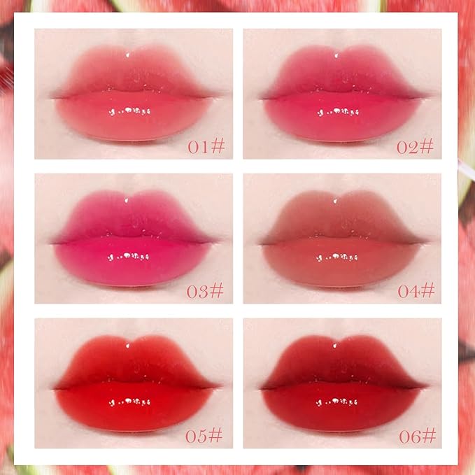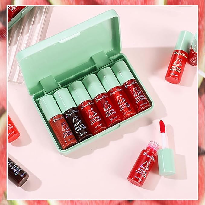 Sulily 6 Colors Lip Gloss,korean Waterproof Lip Tint Stain Moisturizing Natural Mini Liquid Lipstick,Multi-use Lip and Cheek Tint,Non-Stick Cup, High Pigment Long-Lasting lip stain,Watermelon