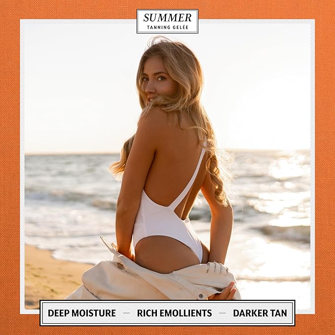 - ADVANCED PROTECTION: Summer Gelée Tanning Gel comes in a convenient 3.12 FL OZ environmentally friendly aluminum tube. Featuring broad-spectrum SPF 30, this USA-made tanning gel provides robust protection against both UVA and UVB rays, effectively safeguarding your skin from sun damage while promoting a healthy, golden tan. The lightweight formula absorbs quickly, leaving no greasy residue for a comfortable tanning experience. Superior sun protection and accelerated tanning in one product.