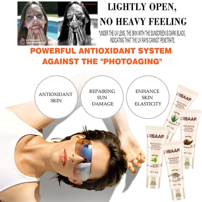- This sunscreen is mild, fresh and not greasy, a good choice for sun blockers in summer. Smooth texture and lightweight is easy to do makeup and does not clog pores. It can effectively prevent UVA and UVB from protecting the skin from sun damage, and it can also moisturize the skin. Waterproof and sweat proof makes the sunscreen last longer.