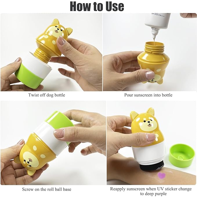 - 🏊UV Stickers: This sunscreen applicator set comes with fun UV stickers that change color when you're exposed to ultraviolet rays, reminding you when to reapply sunscreen. The stronger the UV rays, the darker the color of the sticker becomes. Please ensure to place the sunscreen sticker on clean, sweat-free, and hairless skin.