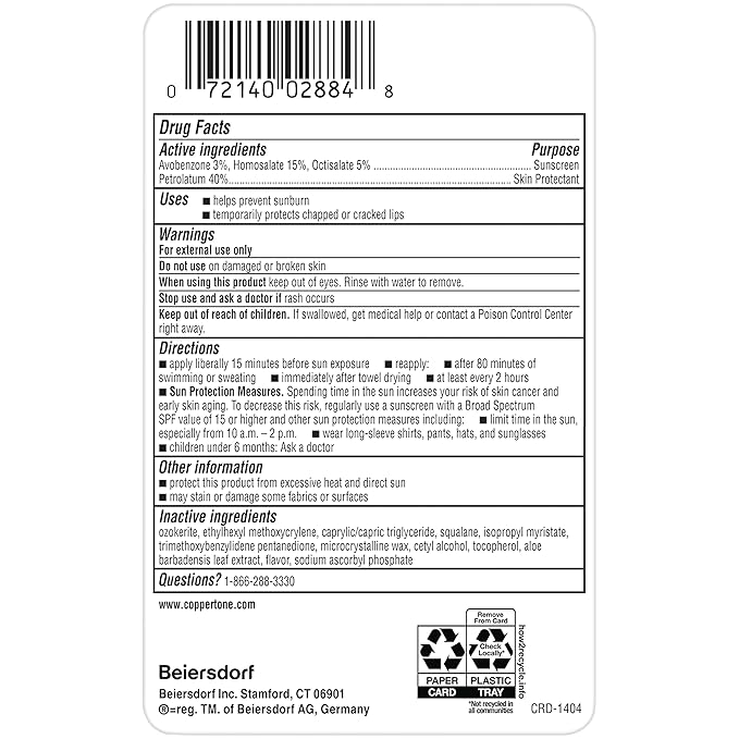 - Free Of: Coppertone Sport SPF 50 Sunscreen Lip Balm is free from dyes, PABA, Octinoxate and Oxybenzone