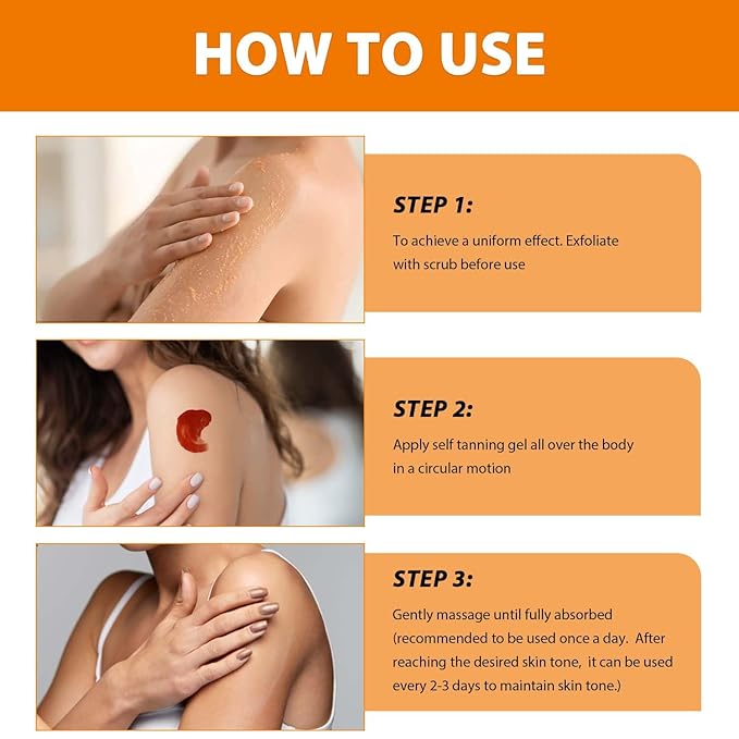 - 【POST-SUN CARE】Say goodbye to dry and undernourished skin after sunbathing. Tanning gel addresses after-sun issues, relieves dry skin and nourishes the skin. Enjoy a long-lasting, glowing and tanned complexion while promoting overall skin health