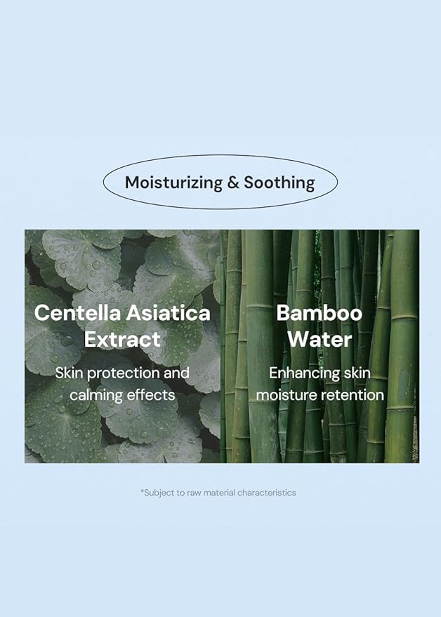 - Natural ingredients for hydration and soothing. Contains Aloe extract, Centella Asiatica that soothes skin