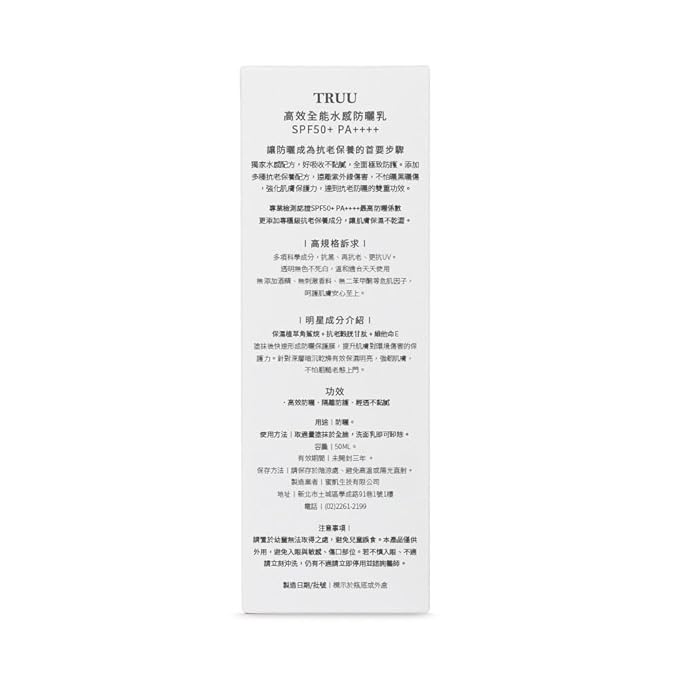 - Sun Protection Factor : 50 Sun Protection Factor (SPF)
