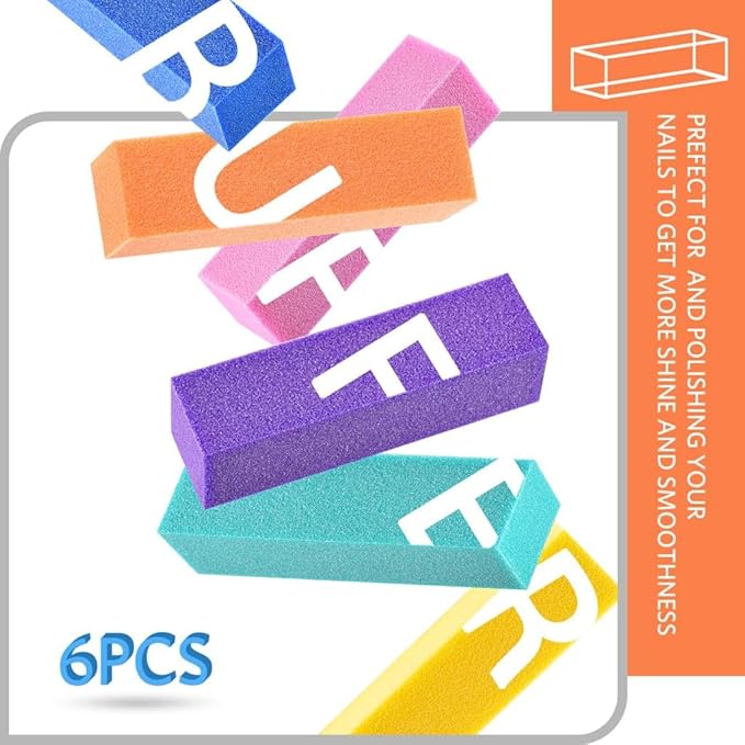 - Colorful Nail Buffer Blocks: The sponges are made of high-elastic sponge materials, sturdy and durable. Polishing and smoothing with a lighter touch without damaging the nail. 6 Colors: green, orange, blue, yellow, purple and pink.