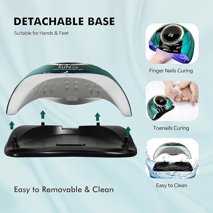 - 🎁【Coloured Glaze Green Paint& ABS Material】ABS Material, make this gel lamp have long service lifetime. If the surface is accidentally stained with nail polish, just wipe it gently with a cotton cloth. Detachable base design is more convenient for toenail gel drying. Hands and feet Mode can switch at will.