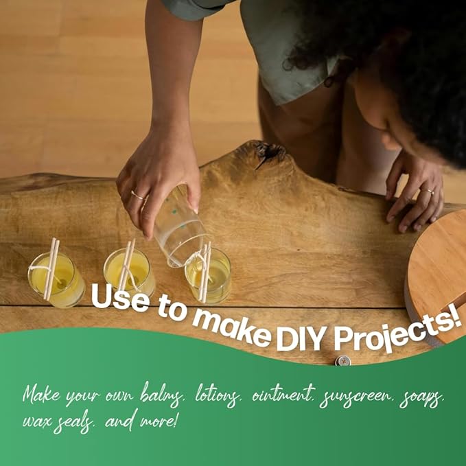 - PURE HOME-MADE COSMETICS: Bees wax is world known for its miracle effects on the skin. Treat dry skin and leave your complexion smoother, softer and radiant with health! Make your own Body Butters, Lotions, Deodorants, Sunscreen, Soaps, Hair products, Crayons and more!